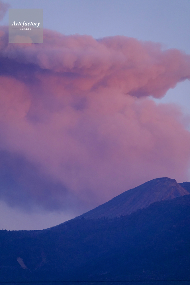 | 作品タイトル | えびの市内から見る新燃岳噴火の噴煙,夕陽に染まる | モデルリリース | なし | |