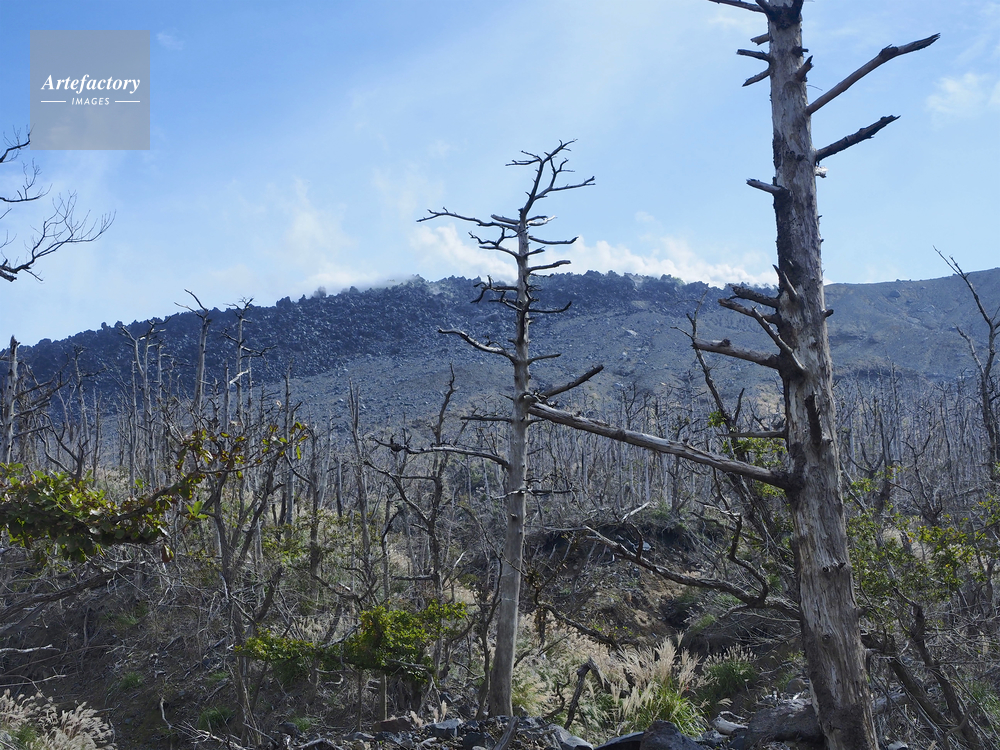 | 作品タイトル | 新燃岳の溶岩(写真左上)と噴火で焼け焦げた森 | モデルリリース | なし | |