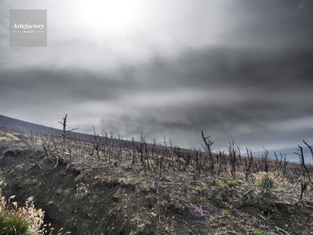 | 作品タイトル | 新燃岳の噴火で焼けた森 | モデルリリース | なし | |