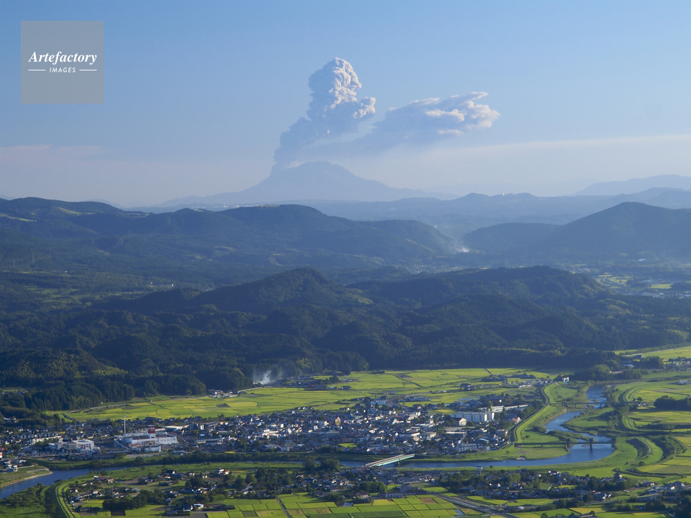| 作品タイトル | えびの市内の田んぼと桜島の噴火 | モデルリリース | なし | |