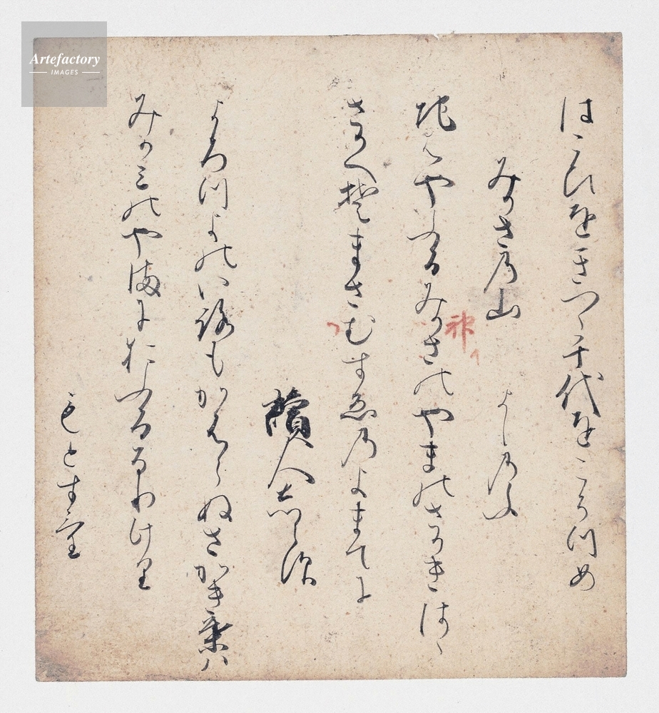 | 作品タイトル | 拾遺和歌集巻第十断簡 下野切 (手鑑「藻塩草」のうち) | モデルリリース | なし | |