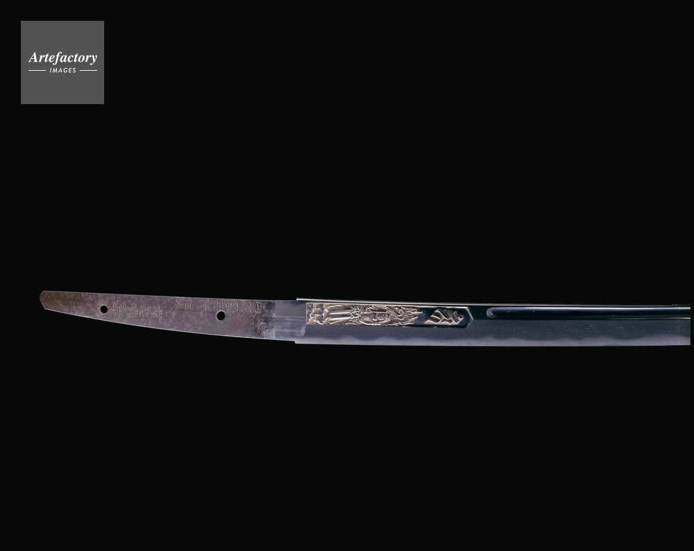 | キャプション | 鎬造、庵棟、鍛之小板目、刃文湾水,1口 刃長 64.7 cm 反り 1.4 cm, 埋忠明寿(うめただみょうじゅ)は桃山時代から江戸初期にかけて京の西陣に住し、新刀鍛冶の祖と称せられた刀工である。また彼は彫金の技にも優れ、鐔(つば)や刀身彫刻には前時代にみられない華麗な斬新さがある。この太刀は反(そり)浅く、身幅やや広めに平肉つかず、鋒(きっさき)は延びて、一見大磨上(おおすりあげ)の刀を思わせるが、これは当時の長い太刀から短い打刀(うちがたな)への流行の変遷を示している。ただ表の樋の中に不動明王像、裏に竜を浮彫にしているのは大磨上とは異なることを示している。銘文に見る「他江不可渡之」は自 (..) | 制限事項 | ||