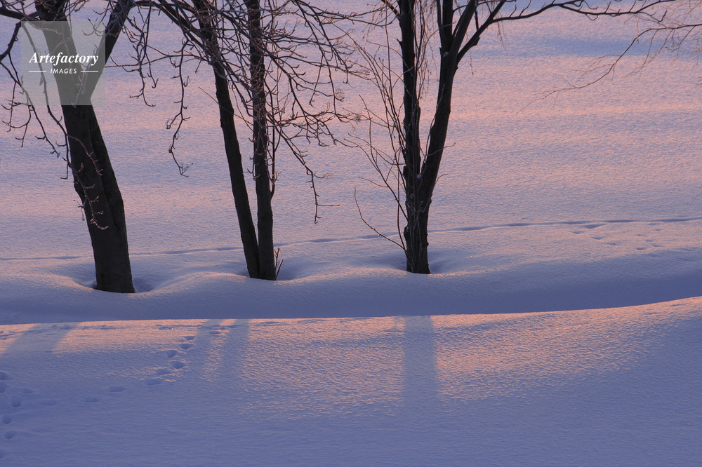 | キャプション | 朝の雪原の樹の影とキタキツネの足跡 | 制限事項 | ||