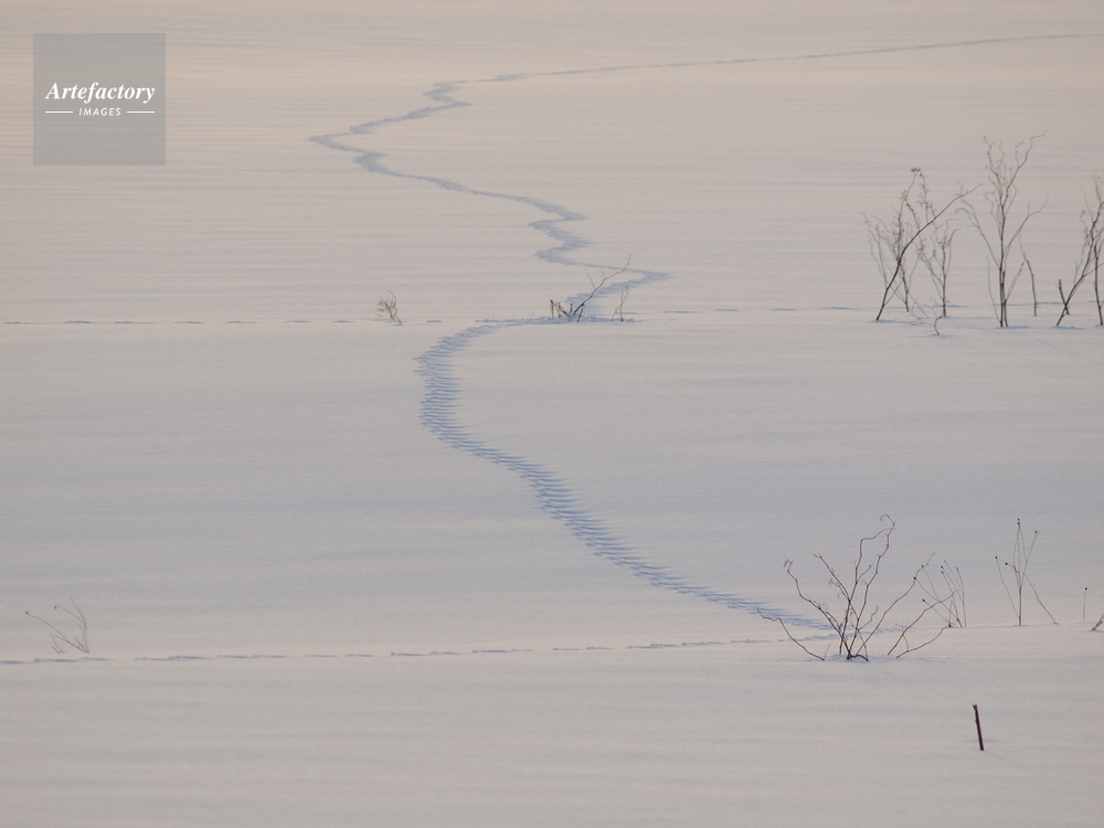 | 作品タイトル | 雪原のキタキツネの足跡 | モデルリリース | なし | |