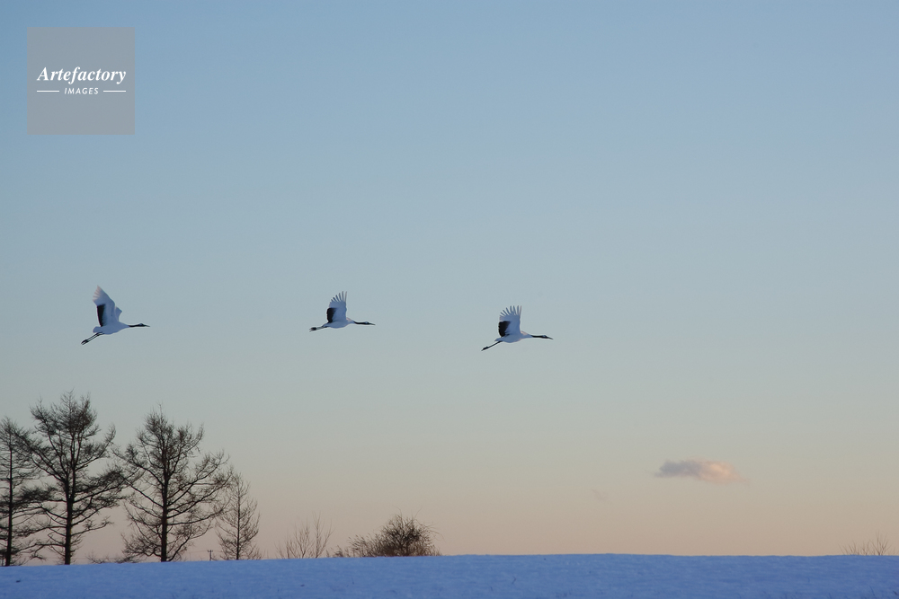 | 作品タイトル | 夕空を飛ぶタンチョウ | モデルリリース | なし | |