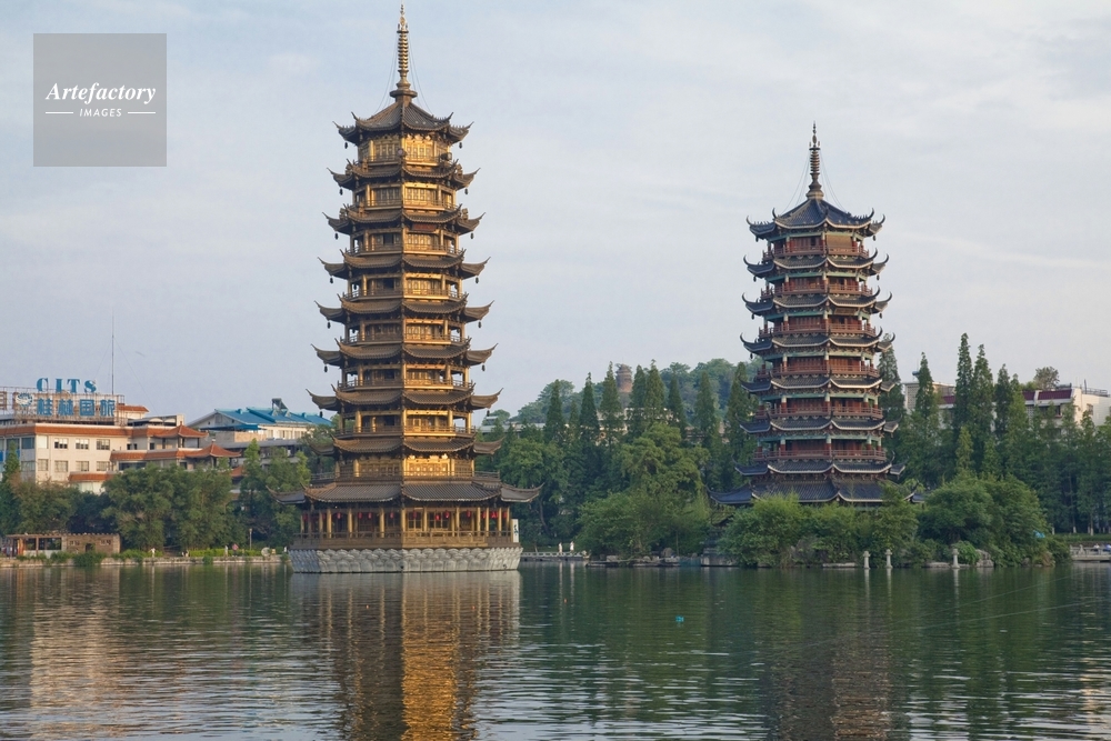| 作品タイトル | 両江四湖の一つ、杉湖の日月塔夕景 | モデルリリース | なし | |