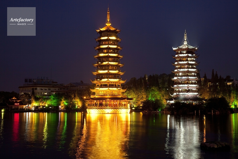 | 作品タイトル | 両江四湖の一つ、杉湖の日月塔夜景 | モデルリリース | なし | |