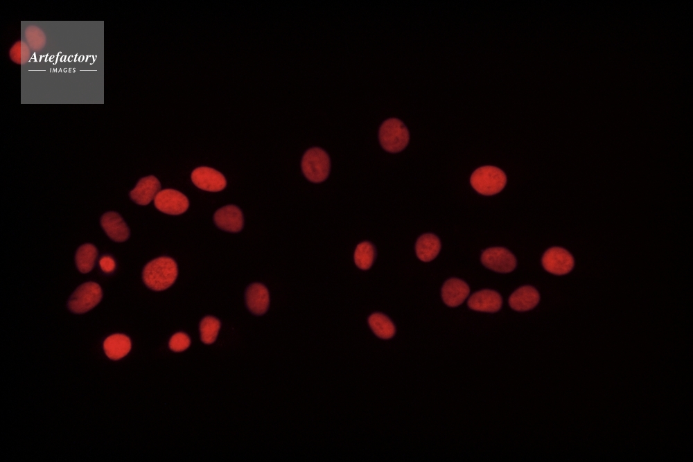 | 作品タイトル | 培養細胞(A549):微小管(FITC標識)と核(PI標識) | モデルリリース | なし | |