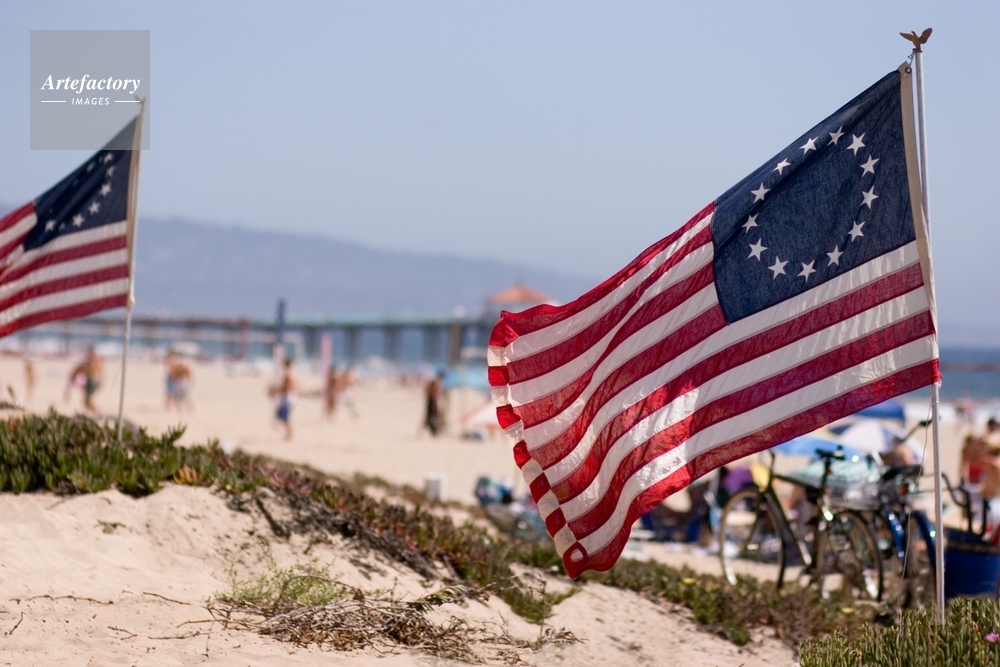 | キャプション | Original 13 states flags fly at a beach party on the Strand in Manhattan Beach this afternoon. | 制限事項 | ||