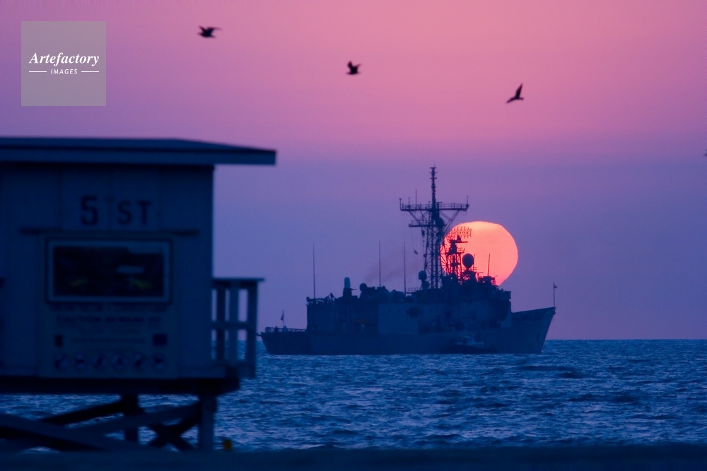 | キャプション | This evening's shot from Fifth St. in Hermosa Beach shows the sun setting behind the USS Ford, docked off Hermosa for a weekend of rest and relaxation. | 制限事項 | ||