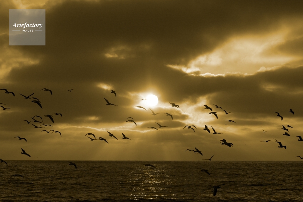 | キャプション | Millions of seagulls - they must be migrating - in flight this evening at 2nd St. in Hermosa Beach, in this colorized photo. | 制限事項 | ||