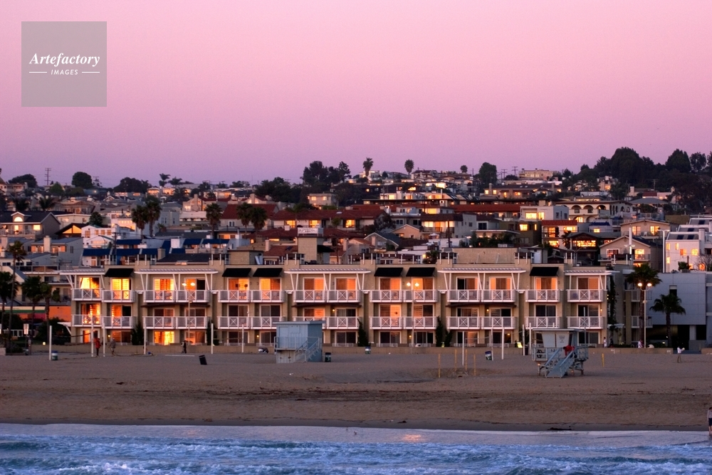 | キャプション | Setting sun reflects in the Beach House and homes north of Pier Plaza in Hermosa Beach last night. | 制限事項 | ||