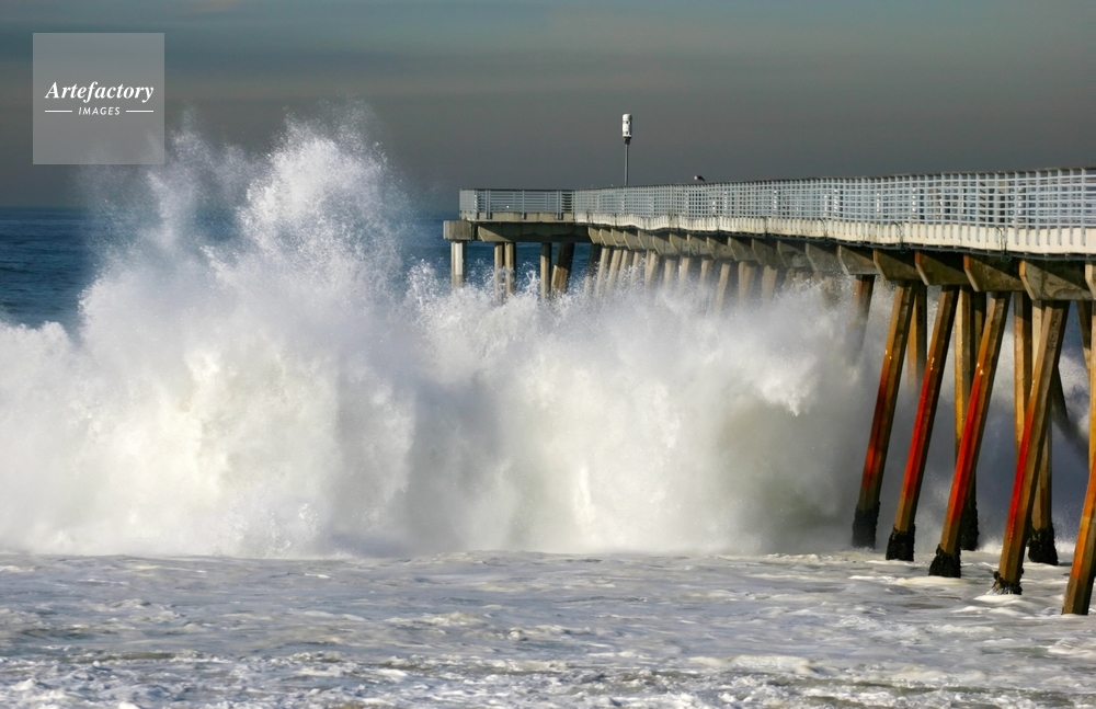 | キャプション | Huge swells rock the Hermosa Pier this morning. The pier was closed just before this picture was taken. | 制限事項 | ||