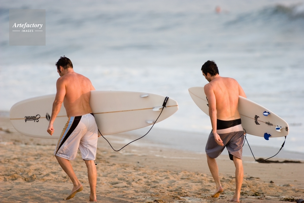 | キャプション | Two surfers walking on the beach after surfing, this evening near 8th St. in Hermosa Beach. | 制限事項 | ||