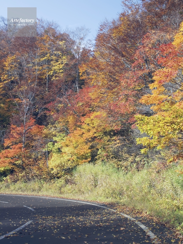 | 作品タイトル | 紅葉の鳥海山麓の朝の道 | モデルリリース | なし | |