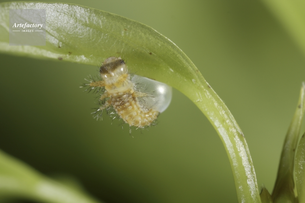 | キャプション | あと少しで幼虫の体が殻から出る | 制限事項 | ||
