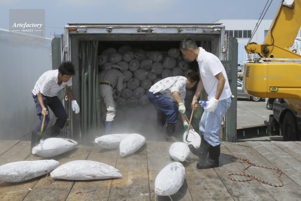 | 作品タイトル | 焼津港、冷凍マグロの水揚げ | モデルリリース | あり | |