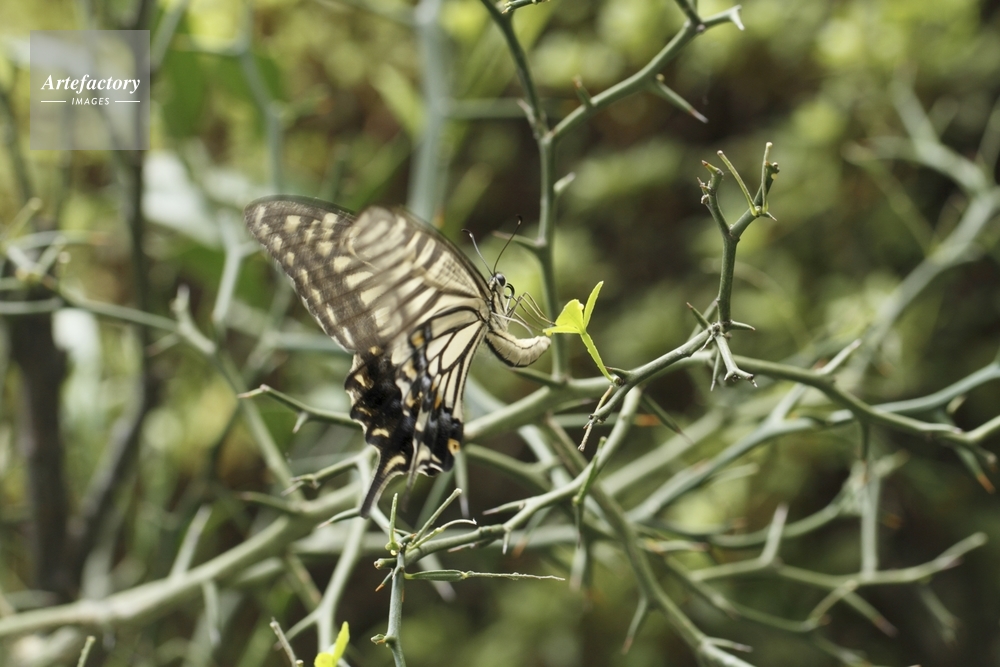 作品タイトル     アゲハチョウ産卵、産んだ卵が見える モデルリリース なし