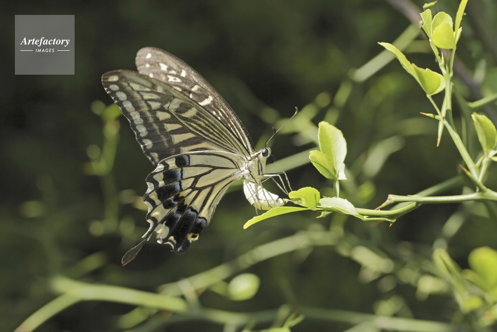 作品タイトル     アゲハチョウ産卵、産みつけた瞬間 モデルリリース なし