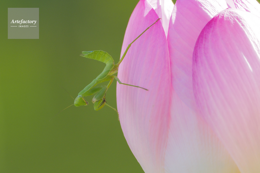 | 作品タイトル | ハラビロカマキリ幼虫 蓮の花で虫を待つ | モデルリリース | なし | |