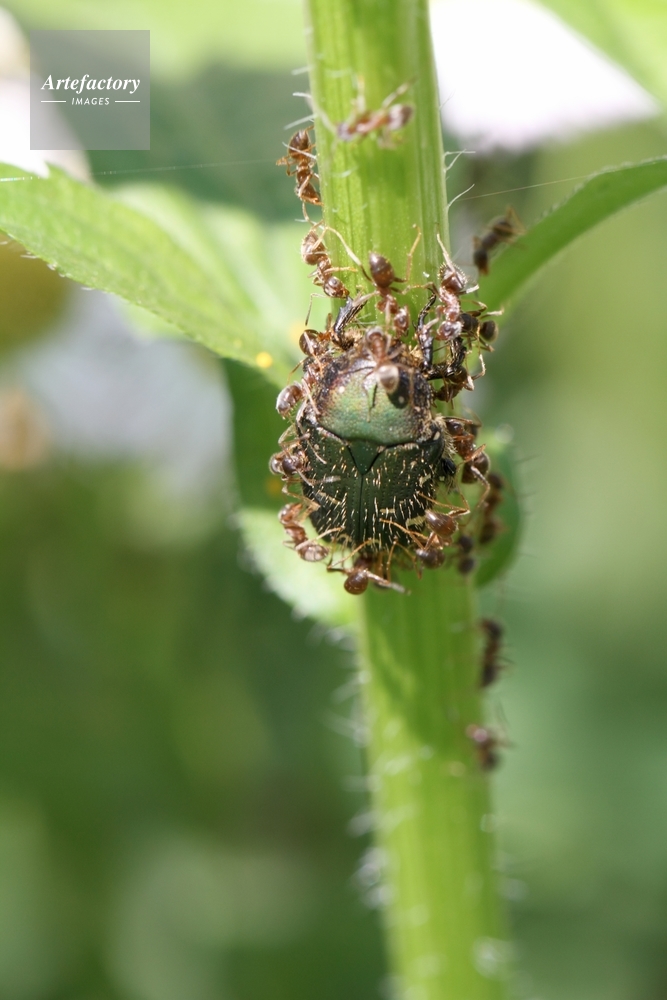 | 作品タイトル | アリに襲われるコアオハナムグリ | モデルリリース | なし | |
