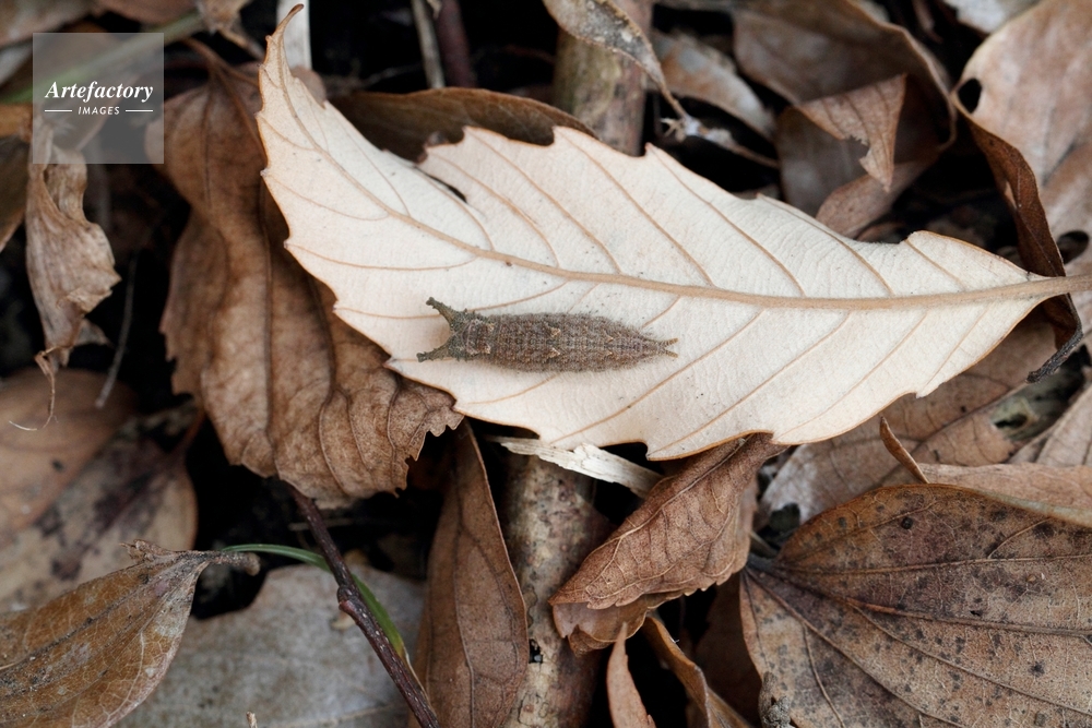 | 作品タイトル | 落ち葉の中で冬眠するゴマダラチョウの幼虫 | モデルリリース | なし | |