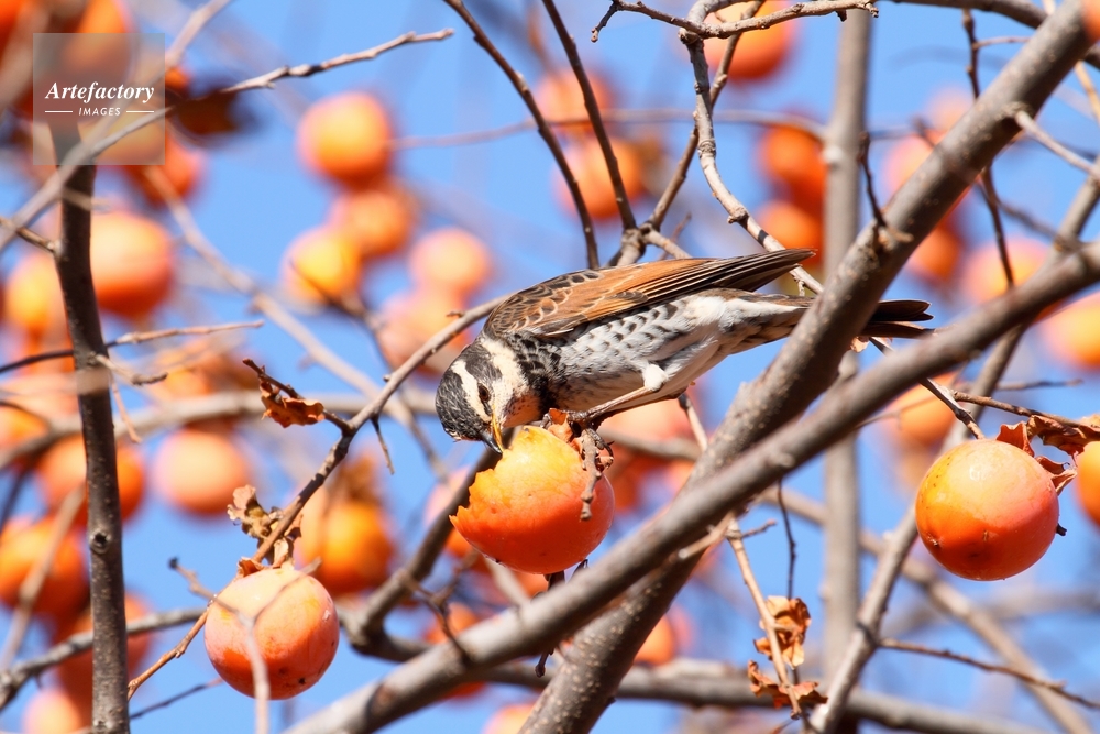 | 作品タイトル | 柿を食べるツグミ | モデルリリース | なし | |