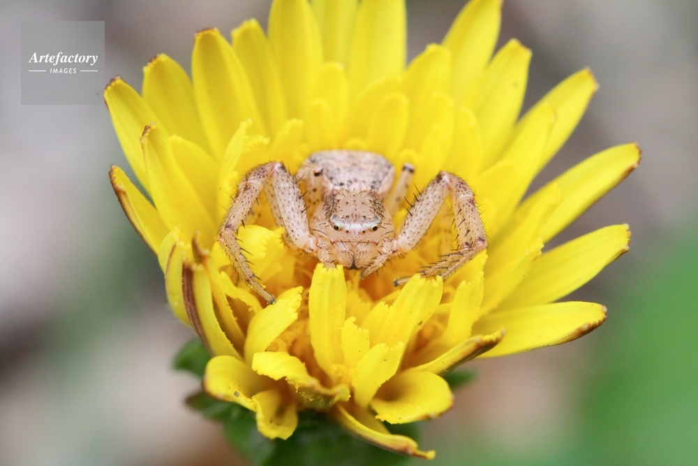 | 作品タイトル | タンポポの花の中で獲物を待つヤミイロカニグモ | モデルリリース | なし | |