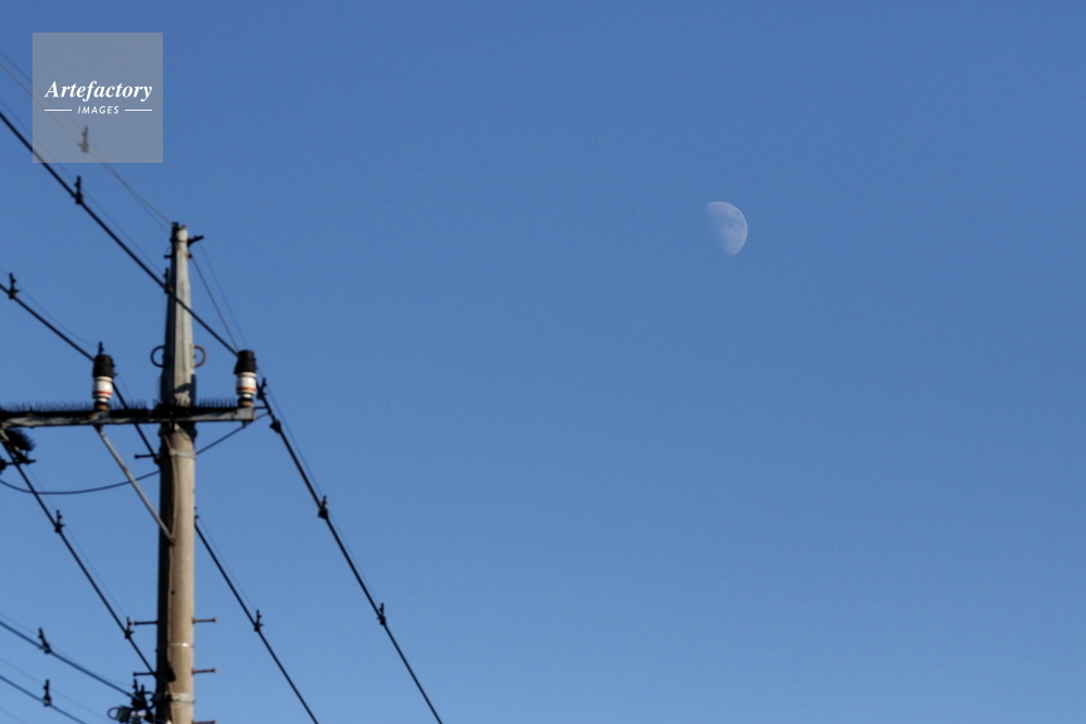 | キャプション | 午後、南東に見える半月は高くなりながら南の方へ動いていきます。月齢9.5 | 制限事項 | ||