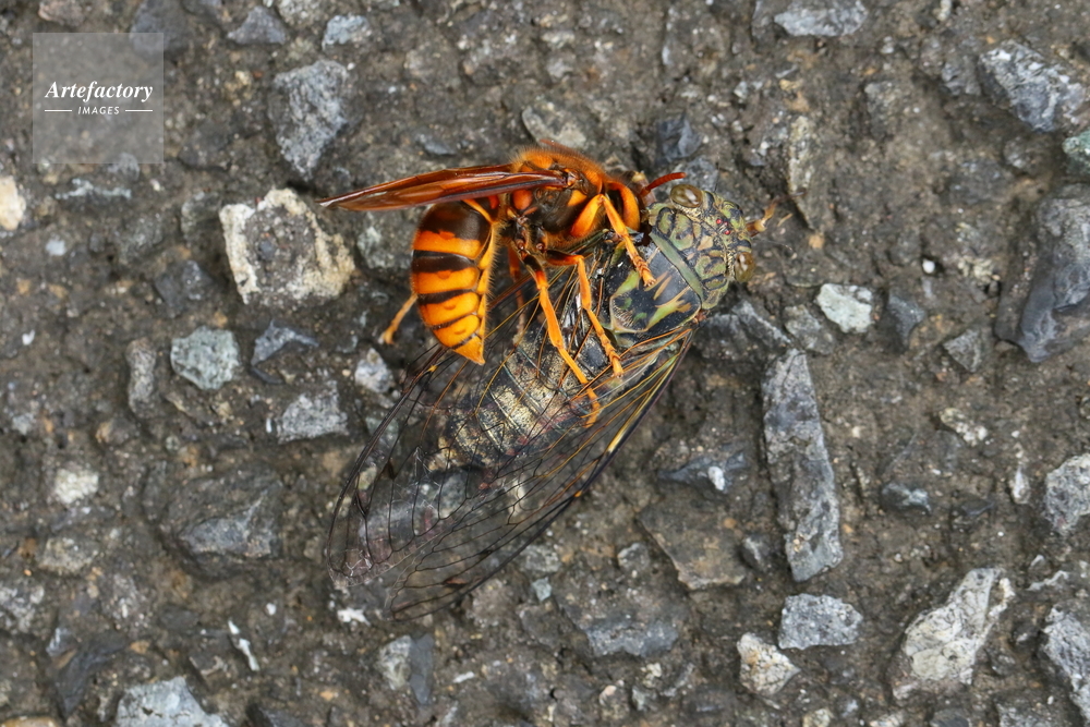 | 作品タイトル | ツクツクボウシを捕まえたキイロスズメ | モデルリリース | なし | |