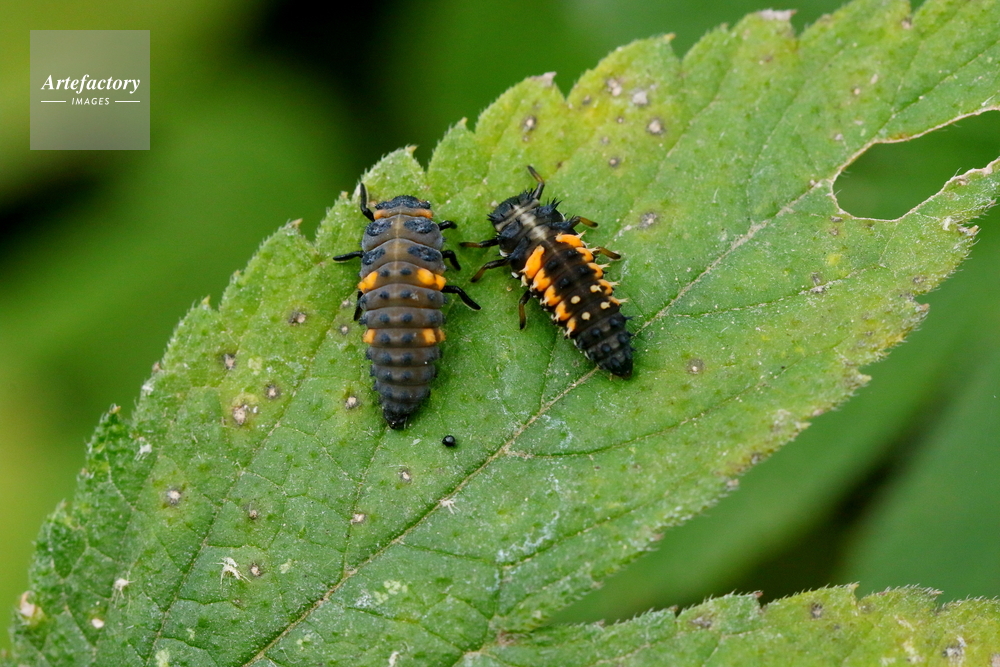 | 作品タイトル | 左ナナホシテントウ、右ナミテントウ幼虫 | モデルリリース | なし | |