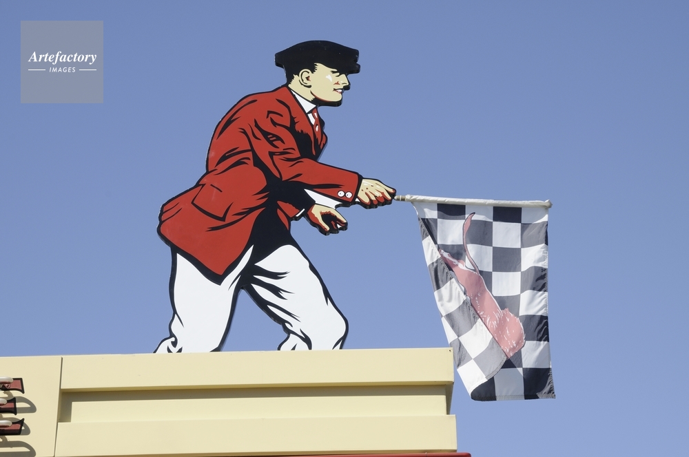 作品タイトル     チェッカーフラッグを持つ看板 モデルリリース なし