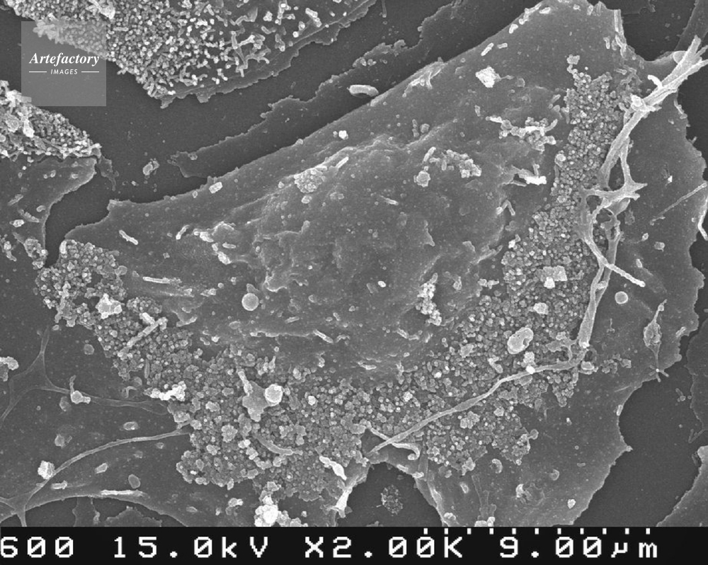 | 作品タイトル | 新型インフルエンザウィルス(A/H1N1)ST297に感染した細胞 | モデルリリース | なし | |