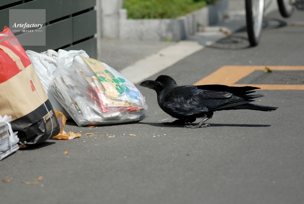 | 作品タイトル | ハシブトガラス ゴミ集積所から食べ物を探す | モデルリリース | なし | |
