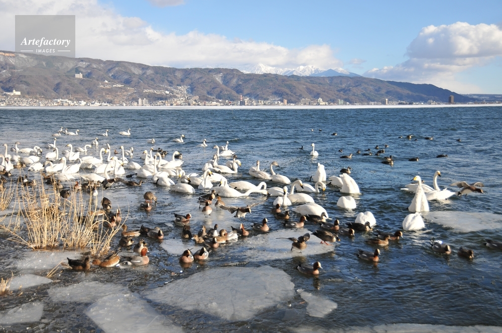 | 作品タイトル | コハクチョウと諏訪湖 | モデルリリース | なし | |
