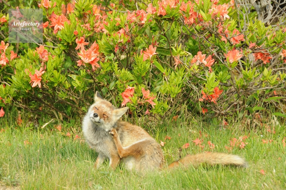 | キャプション | 夏毛 レンゲツツジの花 毛繕い 頭をかく | 制限事項 | ||