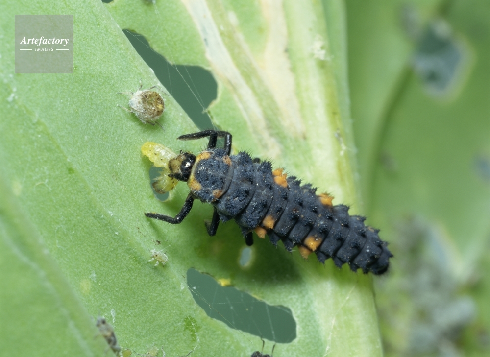 | 作品タイトル | ナナホシテントウ幼虫・アオムシ捕食 | モデルリリース | なし | |