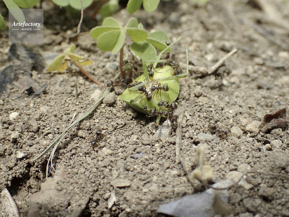 | キャプション | アオクサカメムシ?の死骸を巣に運ぶ アリ科 | 制限事項 | ||