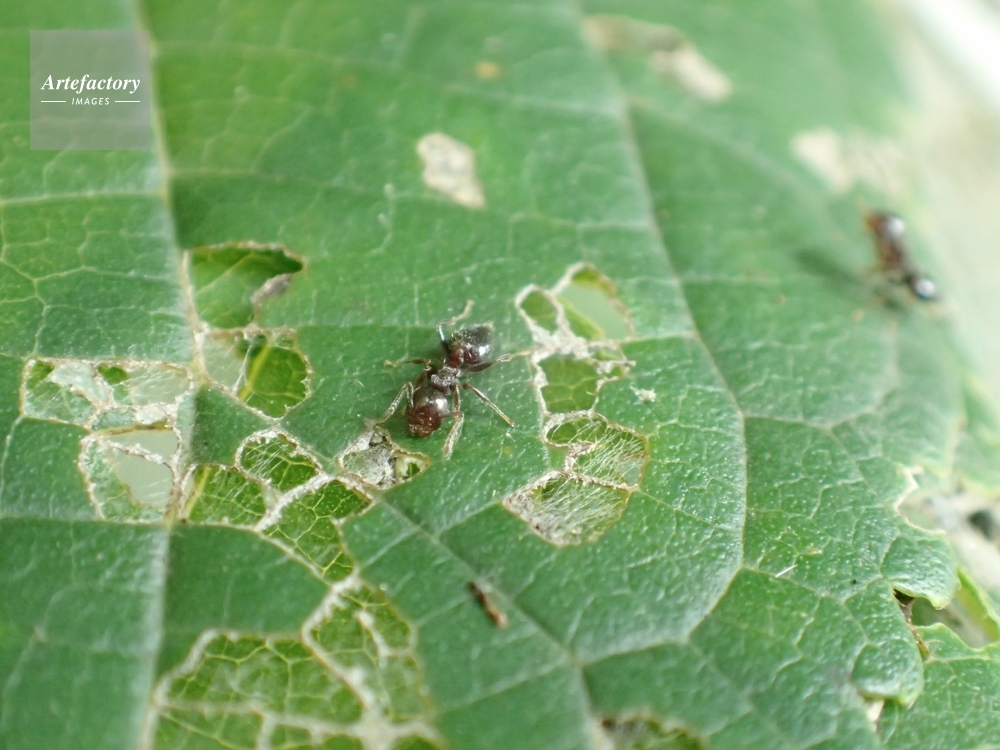 | キャプション | 葉についたアブラムシの甘露をなめる ニクバエ科 | 制限事項 | ||
