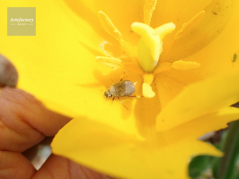 | キャプション | チューリップの花粉を体につける コガネムシ科 | 制限事項 | ||