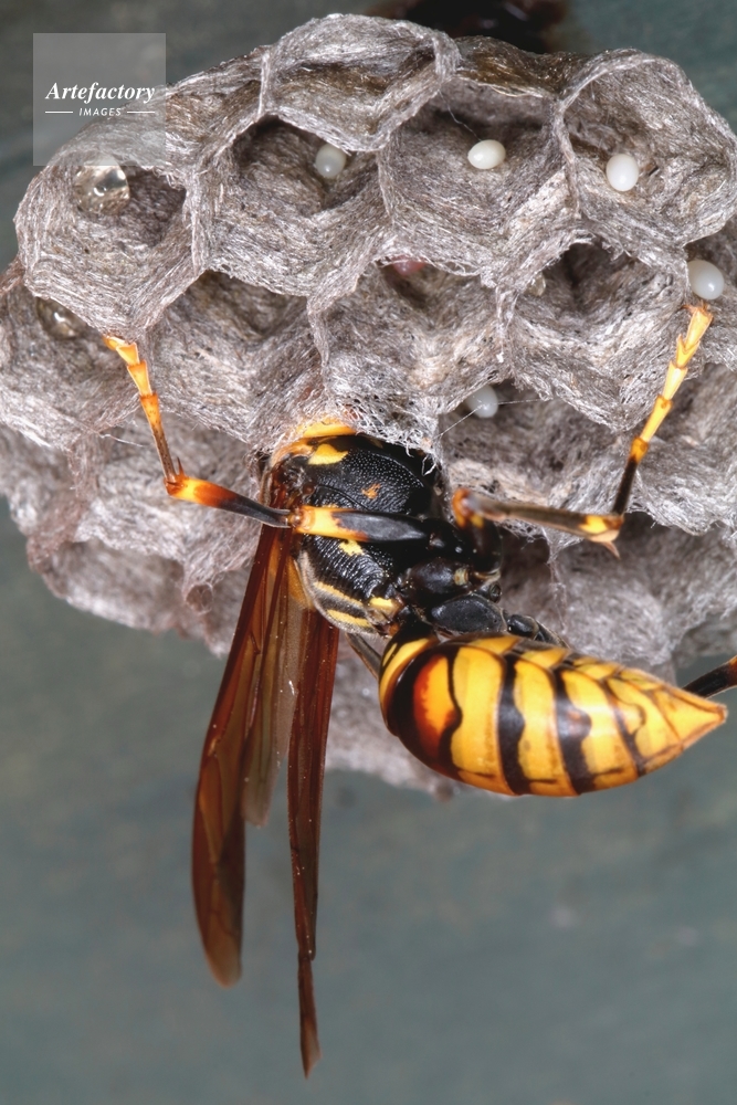 | キャプション | 巣内の様子を見る女王 白いのは卵 液滴は貯蜜 スズメバチ科 | 制限事項 | ||