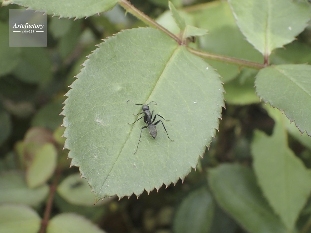 | キャプション | バラ葉上に付着するアブラムシの甘露を舐める アリ科 | 制限事項 | ||
