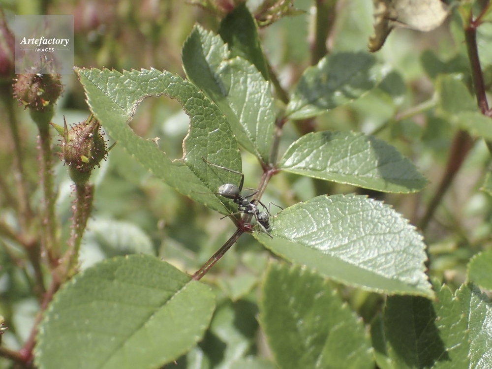 | キャプション | バラ葉上に付着するアブラムシの甘露を舐める アリ科 | 制限事項 | ||