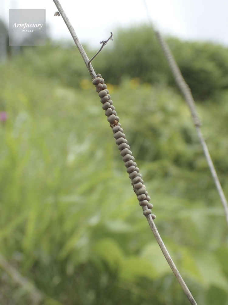 | キャプション | 枯れ草に産まれた卵塊 ツノトンボ科 | 制限事項 | ||