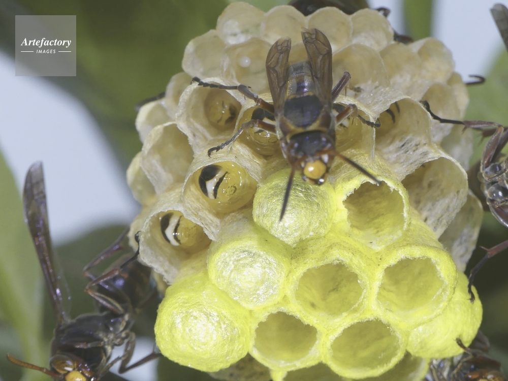 | キャプション | 巣を守る成虫 幼虫 繭蓋で覆われた巣室 スズメバチ科 | 制限事項 | ||