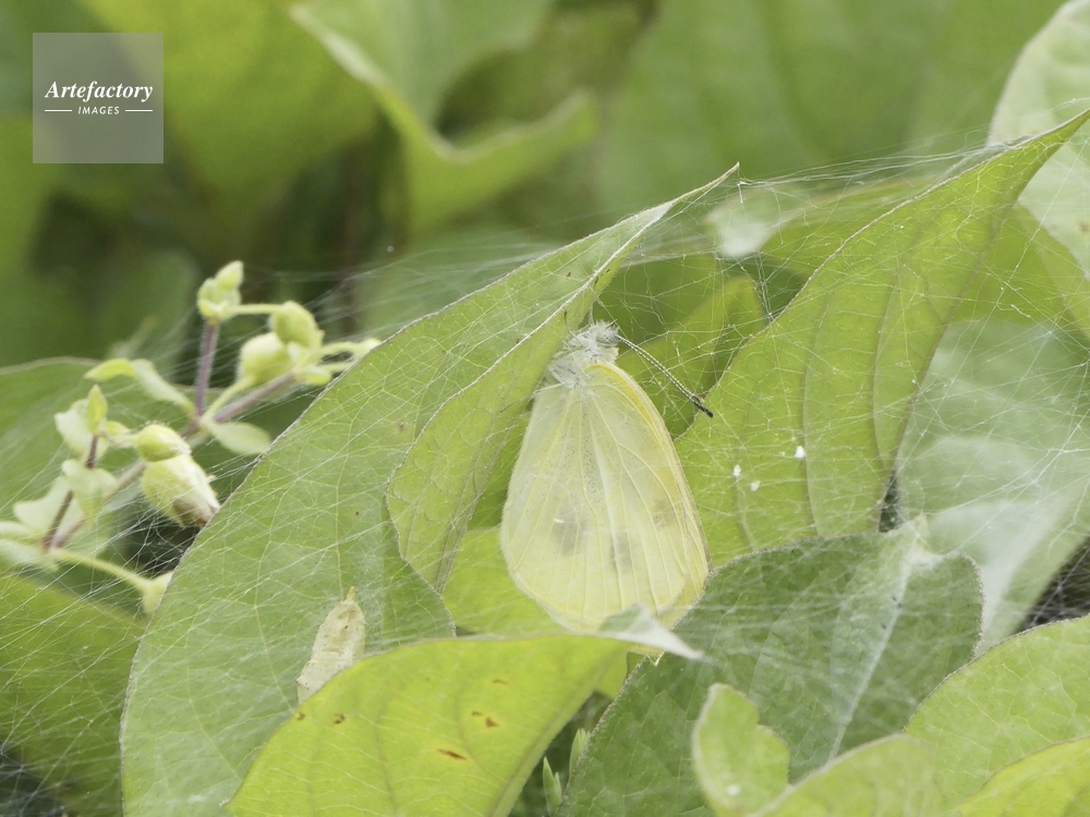 | キャプション | 蜘蛛の巣で囲まれた中で羽化した成虫 モンシロチョウ科 | 制限事項 | ||