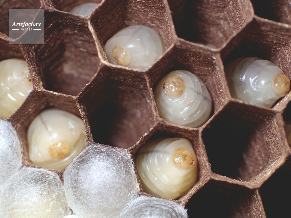 | 作品タイトル | キイロスズメバチ幼虫と繭蓋をした巣室 | モデルリリース | なし | |