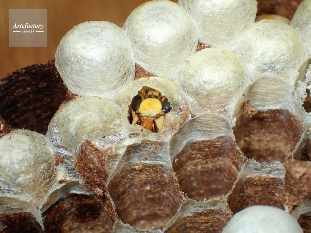 | キャプション | 繭蓋を食い破る成虫 スズメバチ科 | 制限事項 | ||