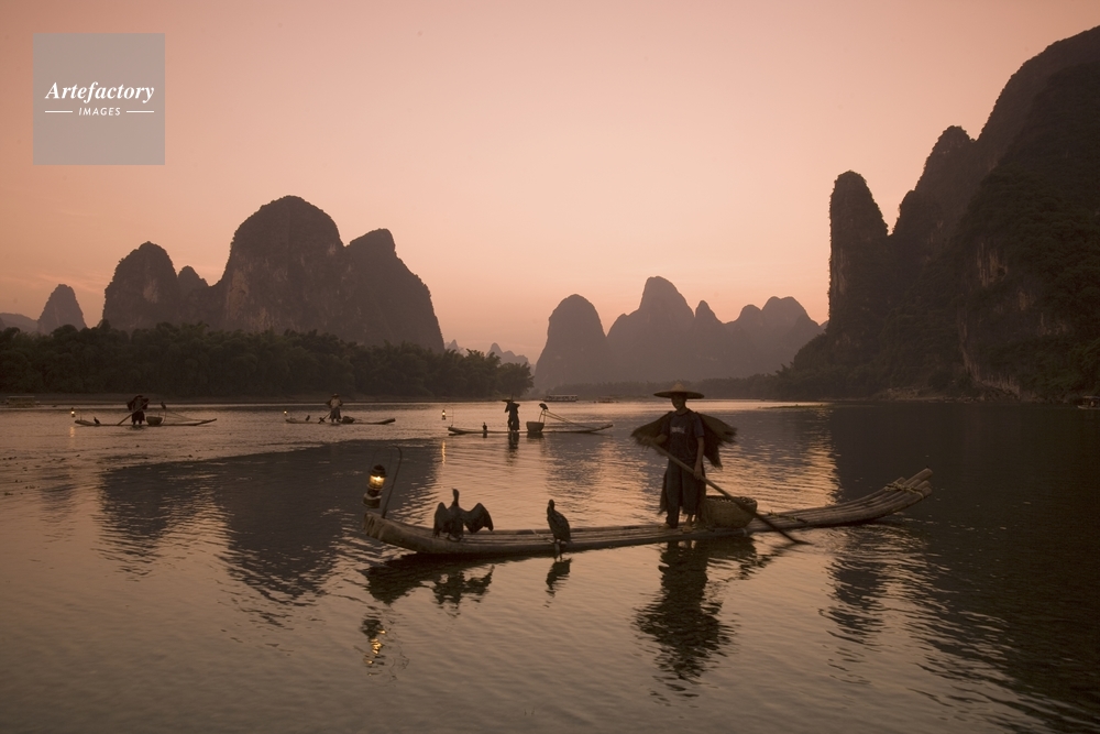 | 作品タイトル | 夕照の桂林山並みと漓江鵜飼い漁 | モデルリリース | なし | |