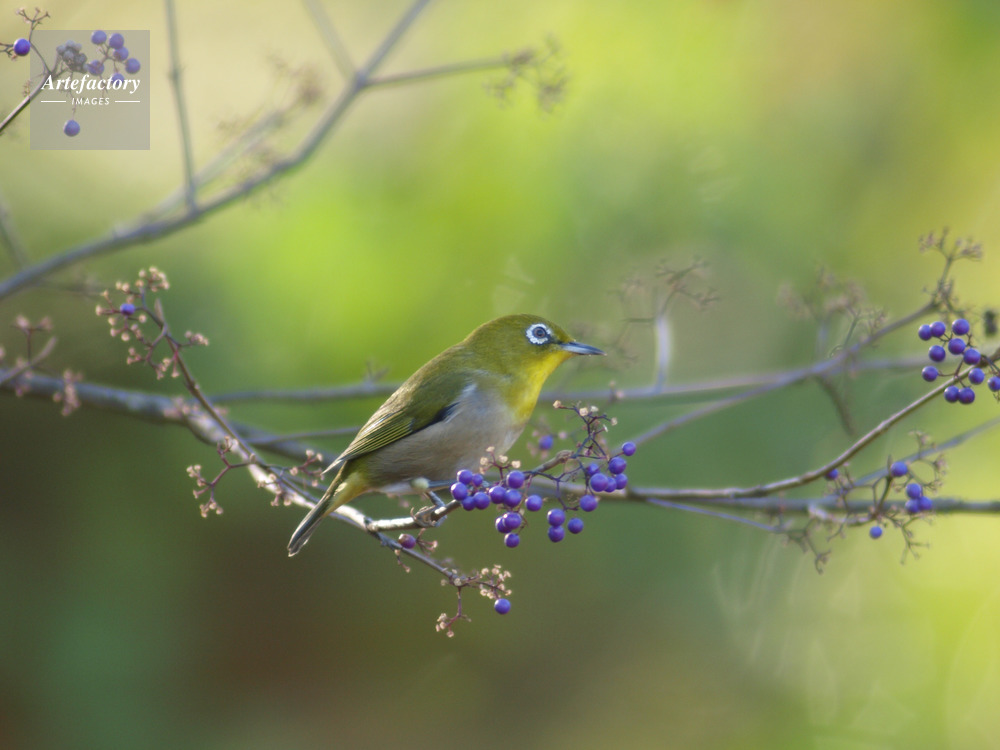 | 作品タイトル | メジロ ムラサキシキブの実 | モデルリリース | なし | |
